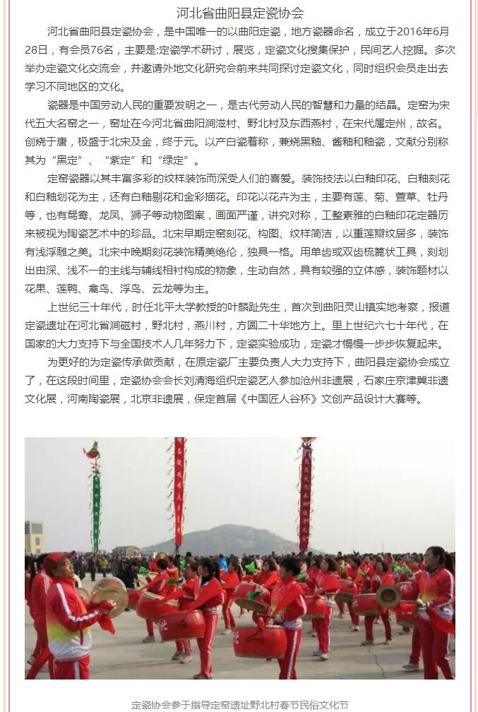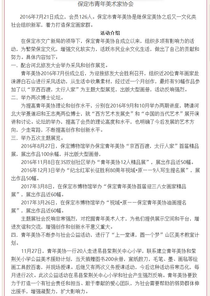 保定市华州京剧社,保定市酒器文化协会,保定市青年美术家协会,保定市爱心艺术团,河北省曲阳县定瓷协会,保定市青年书法家协会,保定市音乐协会声乐专业委员会,保定市京西黄帝文化研究会,保定市虹宝艺术馆,保定市留法勤工俭学运动研究会,保定市关汉卿研究会,保定市直隶老调艺术研究院,保定会馆民俗文化研究会(直隶官府菜研究会),保定市播音朗诵协会,保定刘关张三义文化研究会,保定老字号协会,河北省石雕协会,保定市非物质文化遗产保护协会,保定市收藏协会,保定市国学学会
