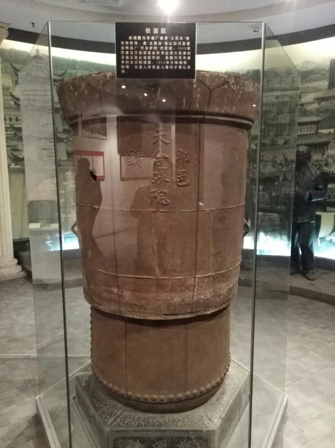 再往前就是气势恢宏的汾酒博物馆,内有名人留下的手迹,酒器以及各类文字资料,最为突出的是古老的铸铁技术,足有两三米高,这也算是酒器的一种吧。院落里汉白玉牧童雕像栩栩如生,忍不住驻足拍照留念,古井的沧桑和精美的石刻向人们展示着千年不变的情怀。最后看到的灌装的车间,橱窗里放着古老的陶器,又有现代技术的瓷器,古代制作陶器的智慧和现代文明形成了鲜明对比。