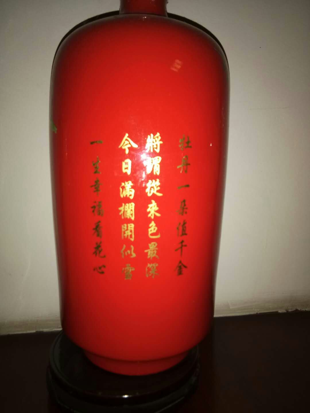 一朋友以豪爽之量,把酒瓶送给我,牡丹似雪、富贵、大气。如此精品,爱不释手。家人也非常喜欢,并在我出门,擦释干净。