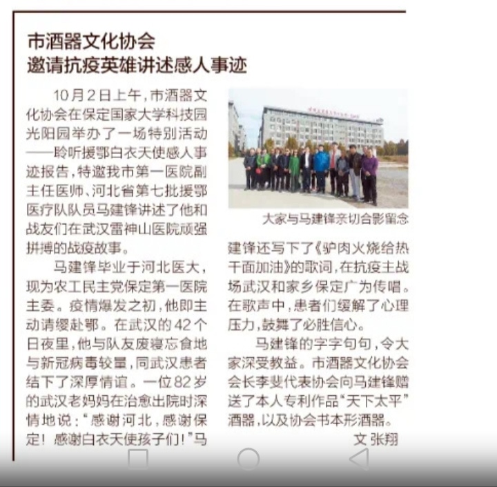 市酒器文化协会邀请抗疫英雄讲述感人事迹
