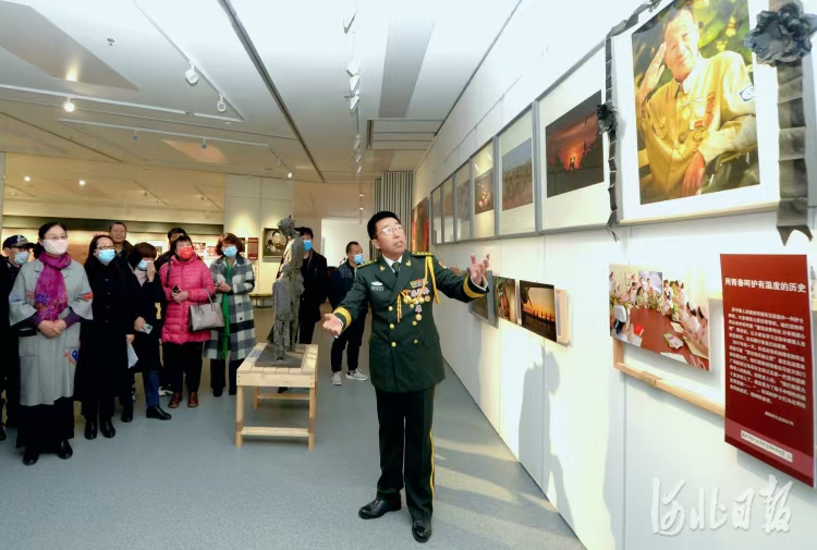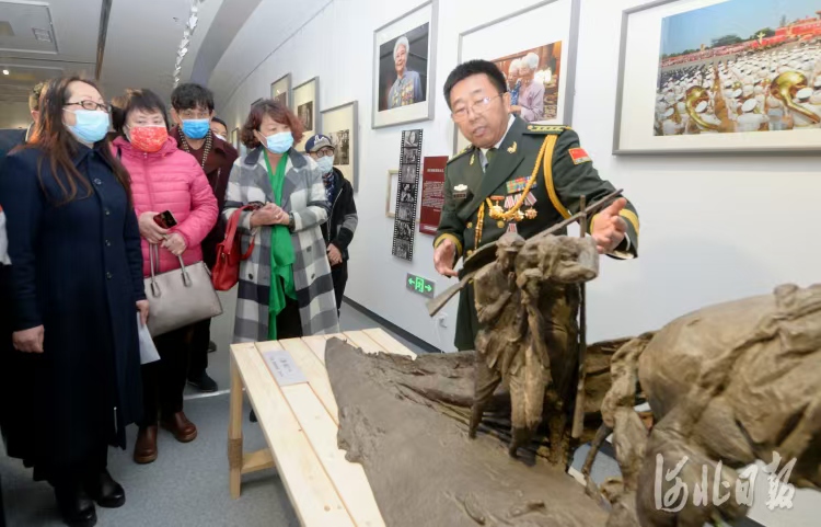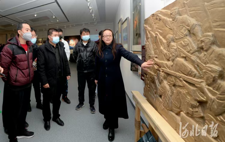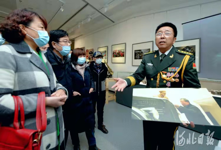 2021年2月27日,在古城保定市新落成的美术馆内,《渠陆军当代光影纪实摄影艺术展》首展在这举行。渠陆军为参观者讲解每幅作品背后的故事。河北日报记者杜柏桦摄影报道