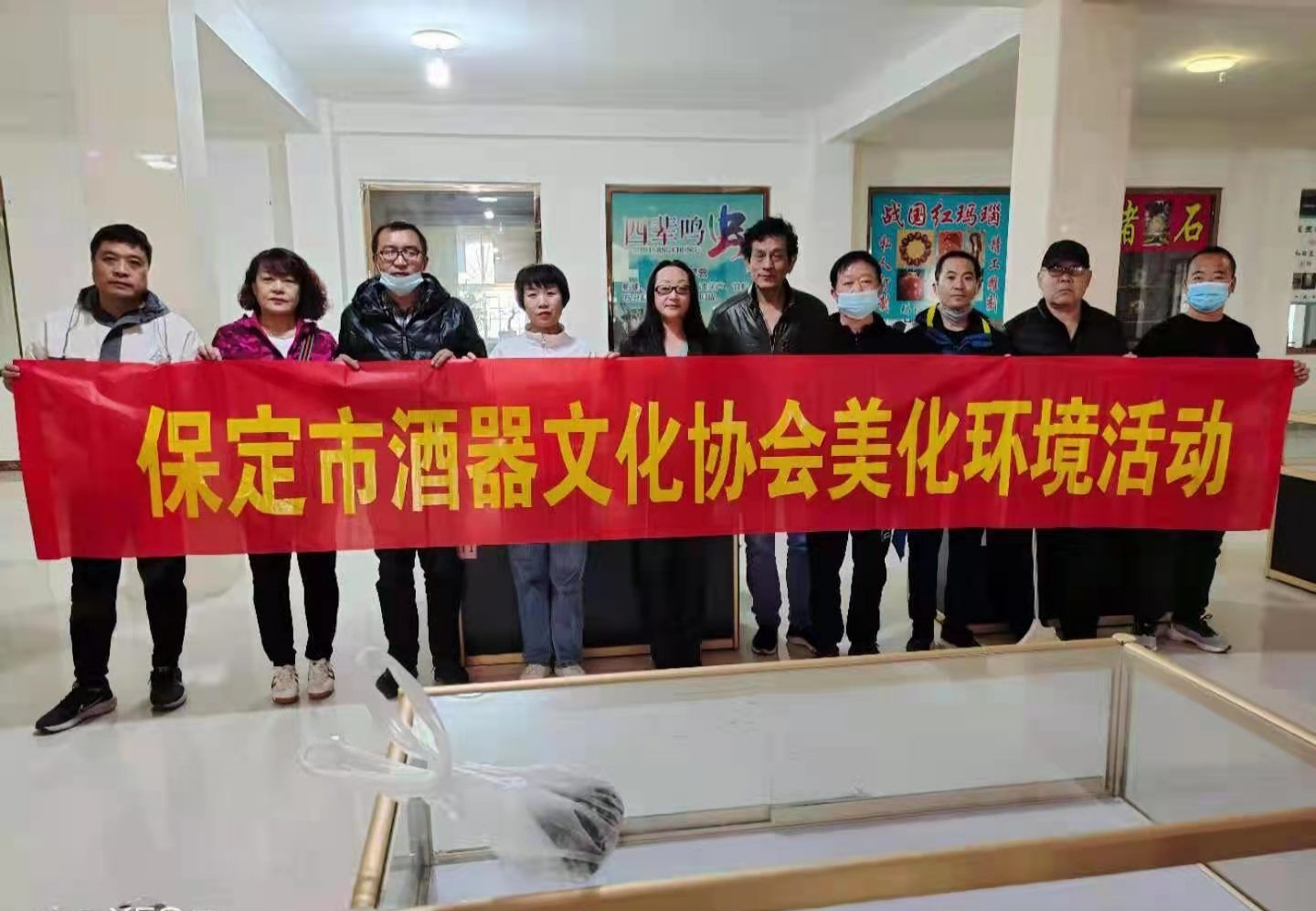 4月17日上午9点,保定市酒器文化协会会员在金银珠宝古玩城(保定市东二环),联合古玩城工作人员共同开展“人人行动,美化环境”活动,得到了花鸟鱼虫市场的大力配合和支持。在市场内及古玩城,我们和工作人员共同打扫卫生,清理垃圾,宣传环保,净化庭院,手拿工具奋力争先:有的拿着扫把,有的清理地面垃圾、树叶,有的擦拭柜台,大家发扬不怕脏,不怕累的劳动精神。也为游客提供了一个舒适、环保、清洁、卫生的淘宝环境。