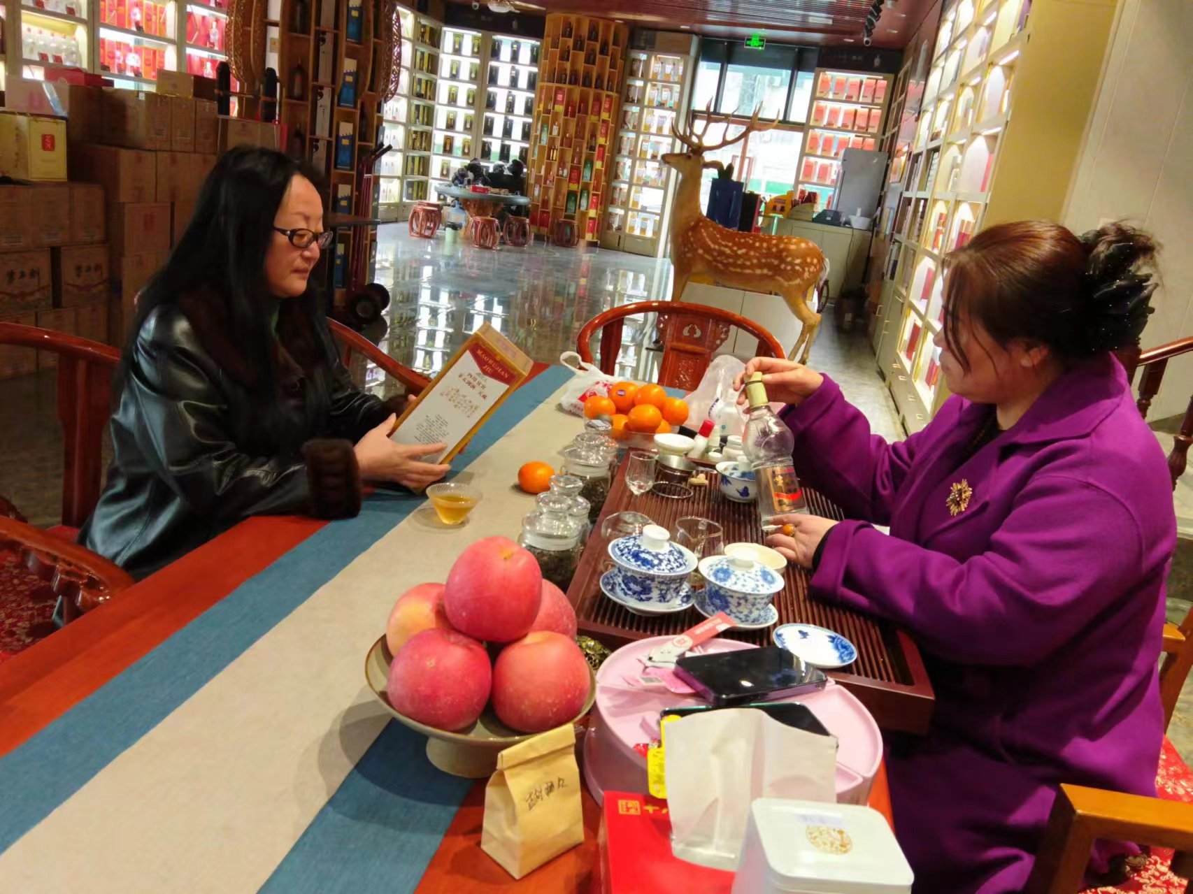 2024年3月4日,保定市酒器文化协会会长李斐和居保定市茅五剑酒业有限公司董事长蒋晓花共同品酒论器。短时间的介绍让对方了解到协会的宗旨和发展等。