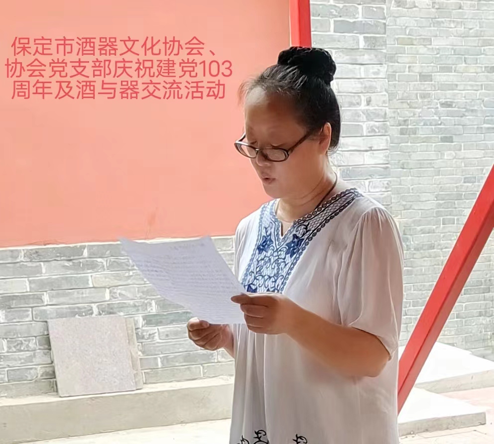 2024年7月7日,保定市酒器文化协会会长、协会党支部书记李斐,带领大家在保定古玩市场庆祝建党103周年,一起为党祝福!并在此举办酒与器交流活动。