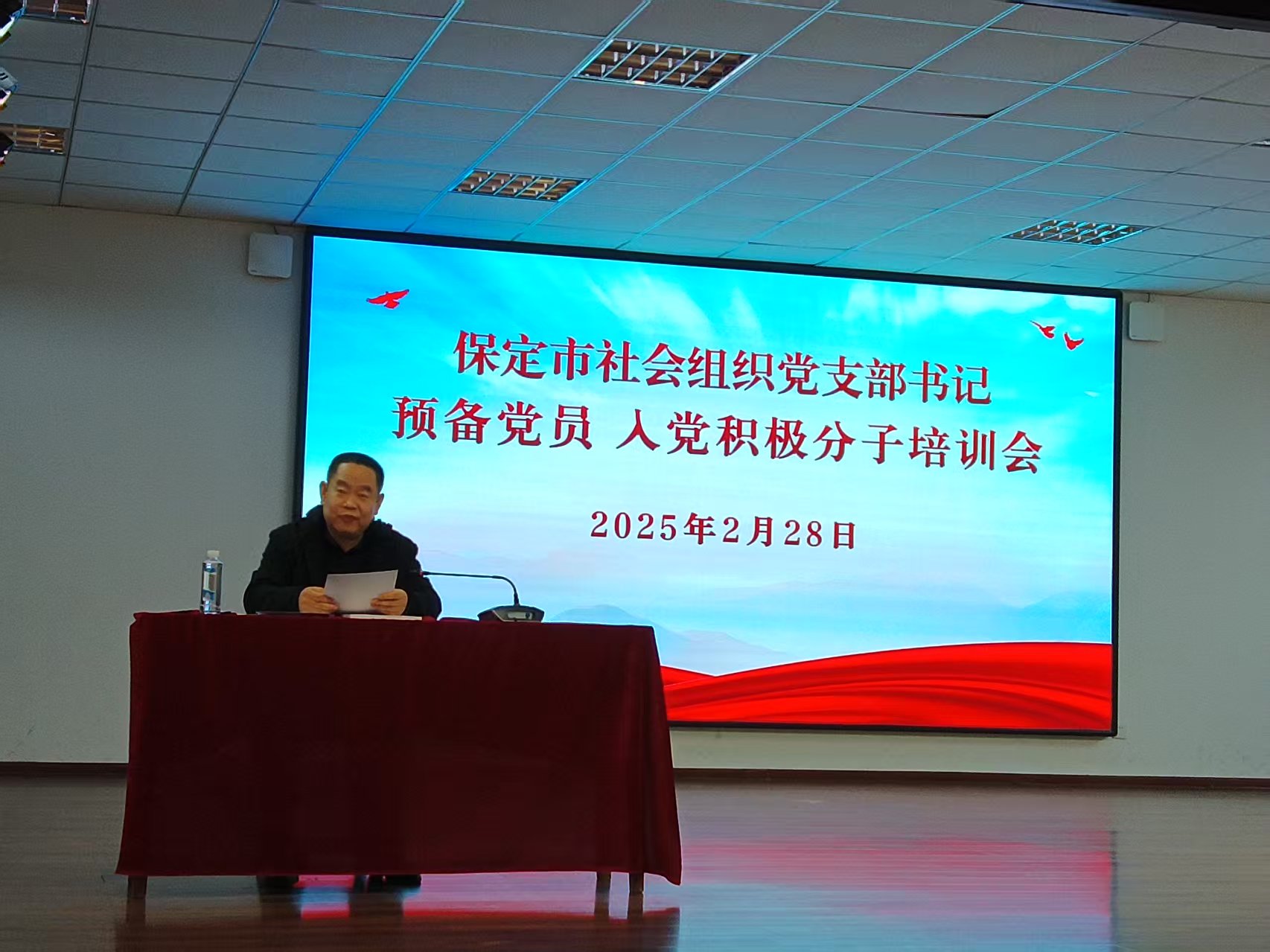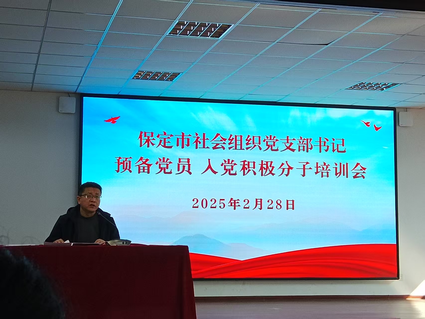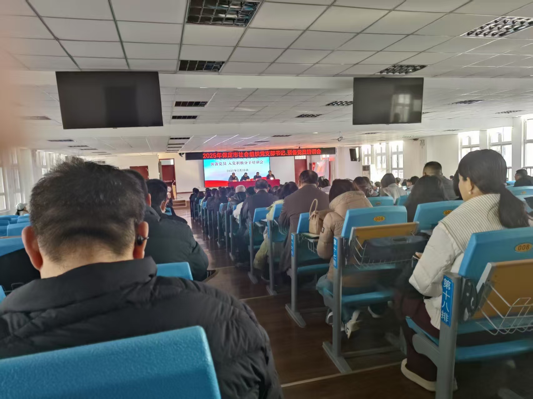 2月28日,保定市社会组织党委在保定市育德中学大礼堂召开社会组织党支部书记、预备党员、入党积极分子培训会,以不断提升社会组织党支部书记工作能力,同时对预备党员和入党积极分子进行集中培训。市社会组织党委全体委员,172名党支部书记及90名预备党员和入党积极分子参加会议。会议总结市社会组织党委2024年工作,并对2025年各支部工作的开展提出明确要求。同时部署近期党委重点工作,分析如何推进社会组织规范化建设、助力经济社会高质量发展,讲解发展党员工作的流程及标准。