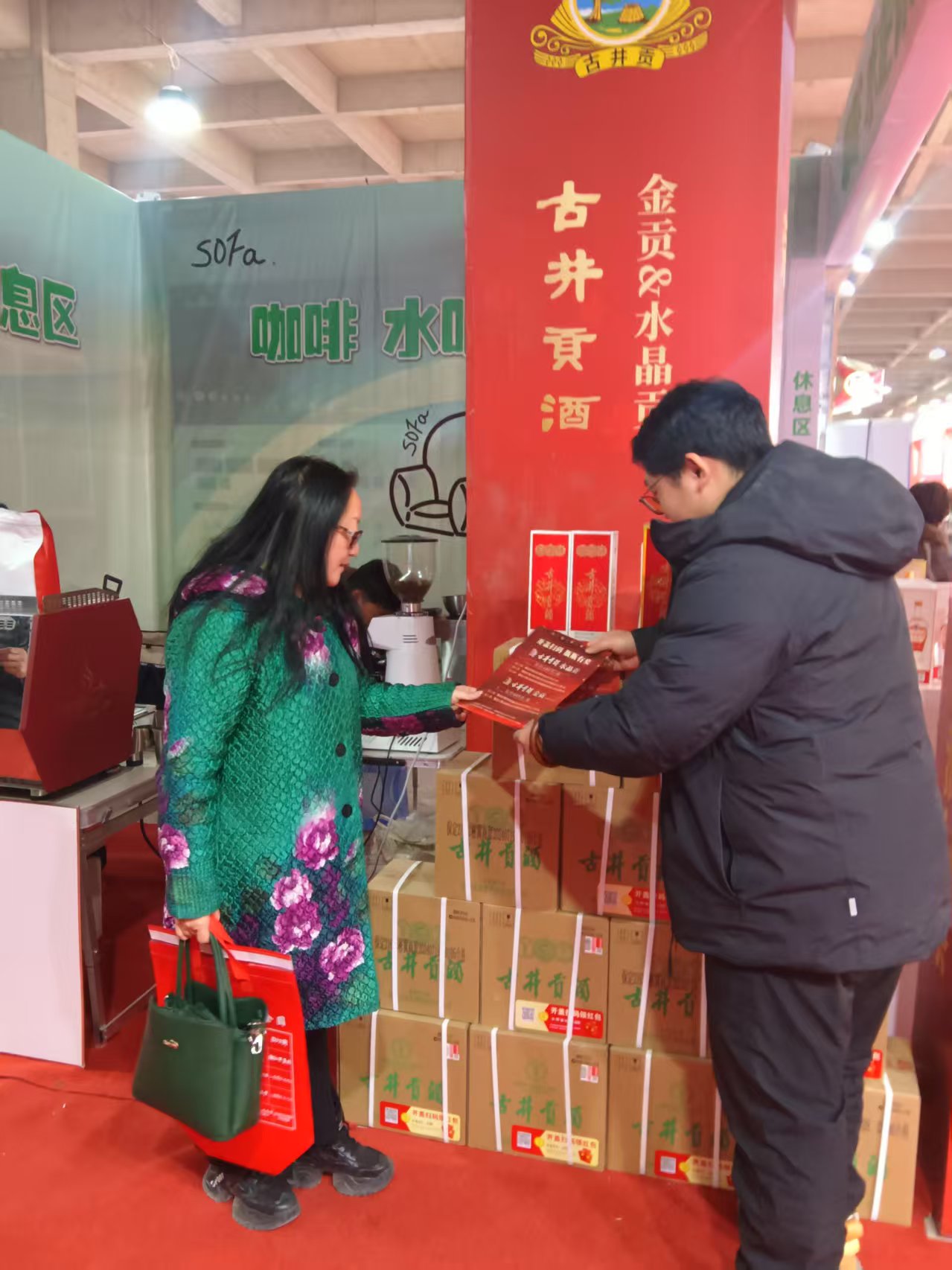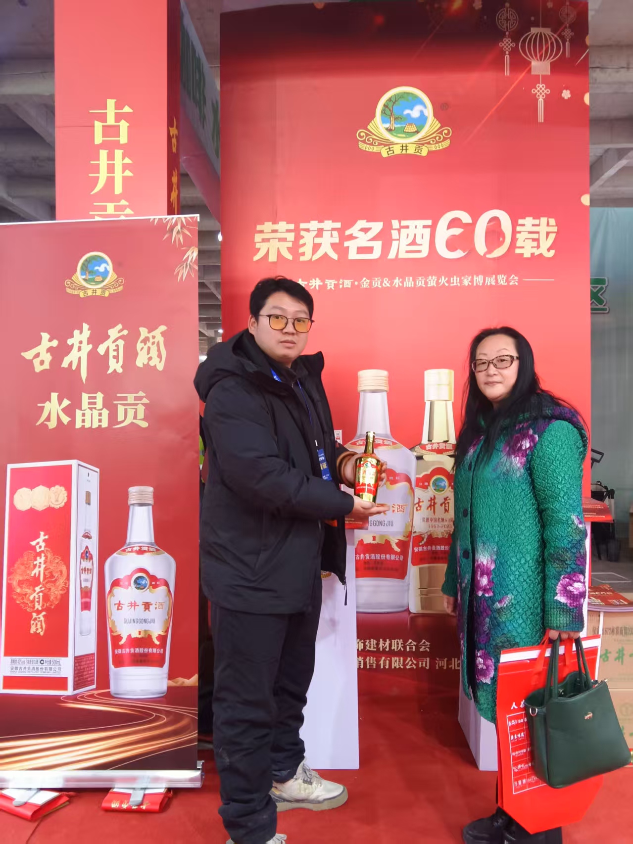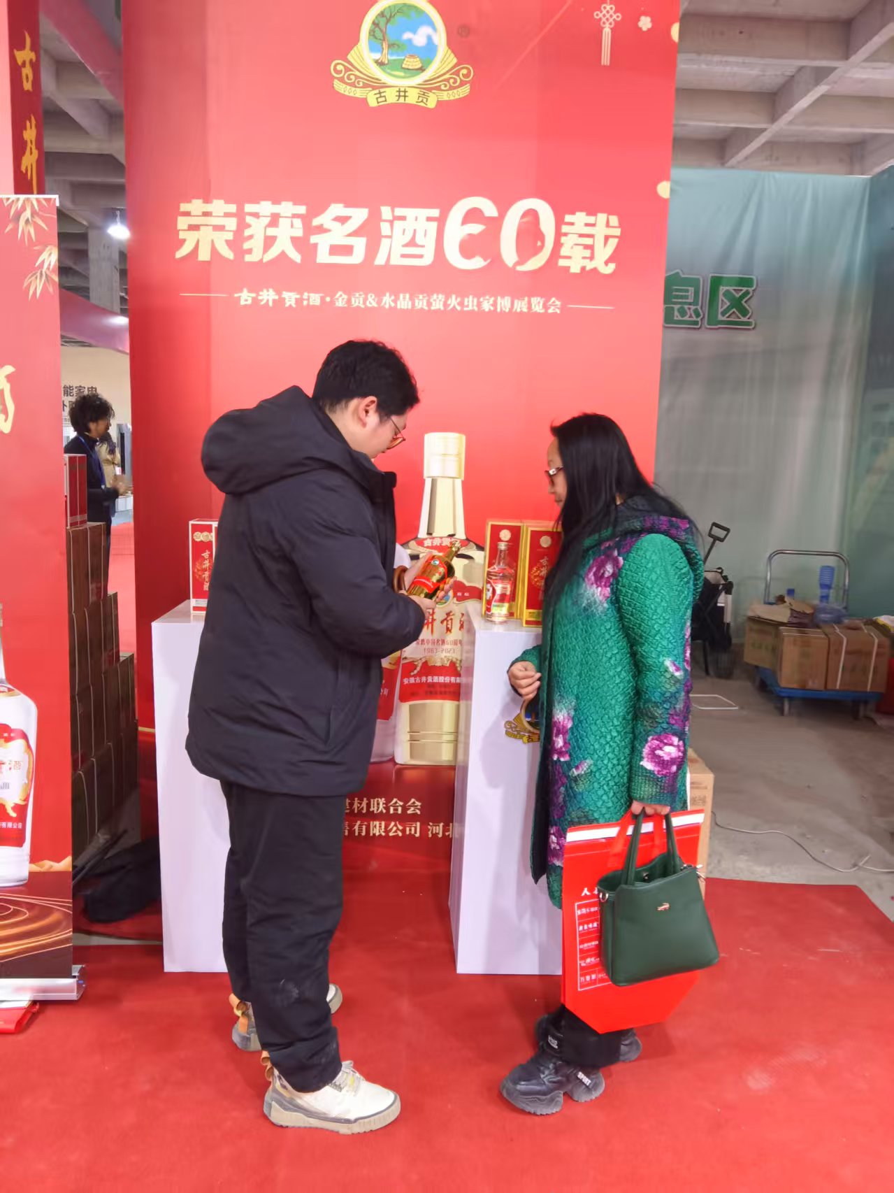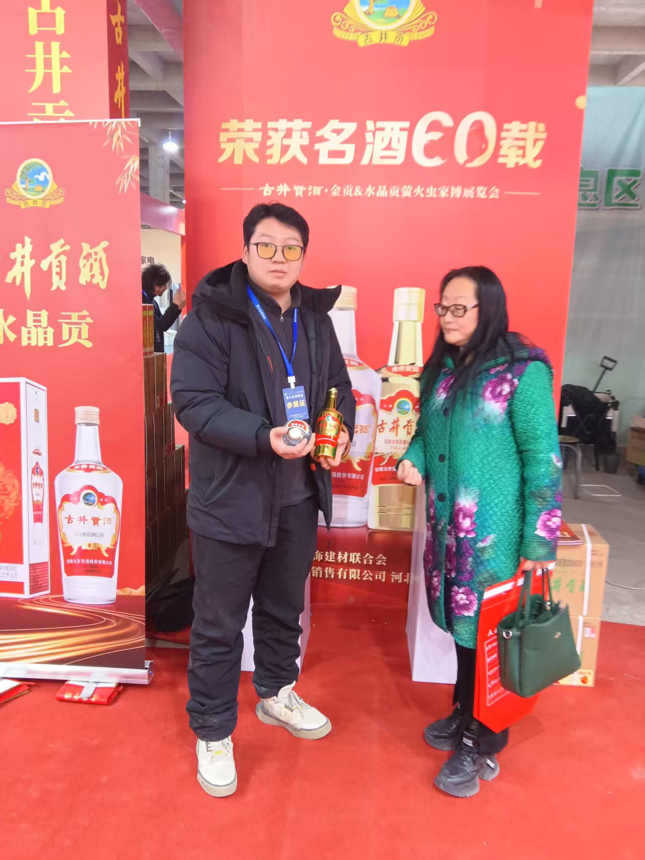 在展示中遇到保定市代理古井贡酒杨国成经理,并探讨酒与器知识。