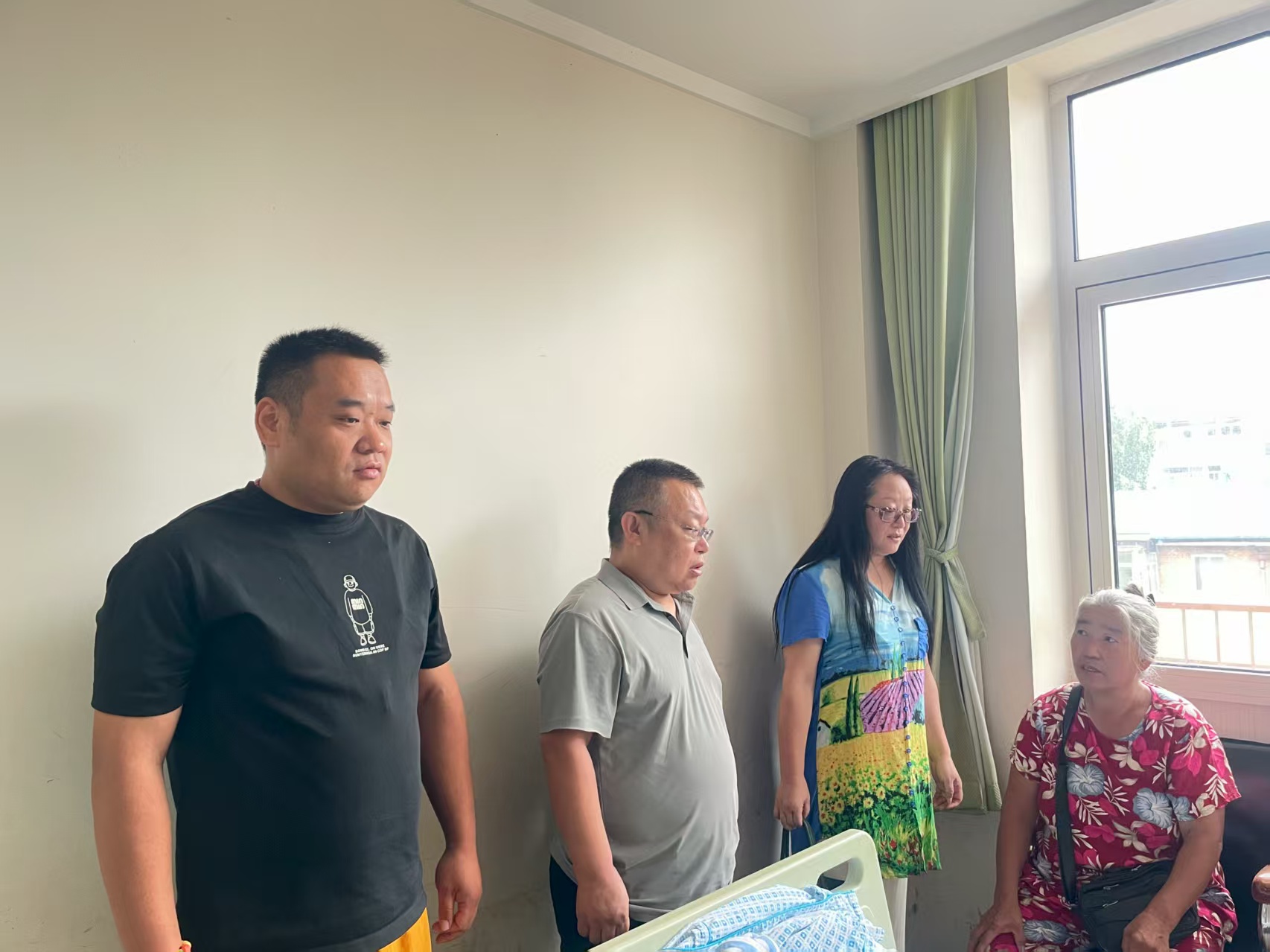 保定市酒器文化协会会长、党支部书记李斐,于7月28日上午和环卫清洁工苑改玲大姐取得联系,预约8月初到家中看望她,当知道她的老公得病住院了,第二天上午同协会党员干部们携带礼品到省医院去慰问,为她们带来了米、面、油、鸡蛋、牛奶、海参蛋白肽粉、高钙豆奶粉、虾仔酱、苹果、口罩等礼物。