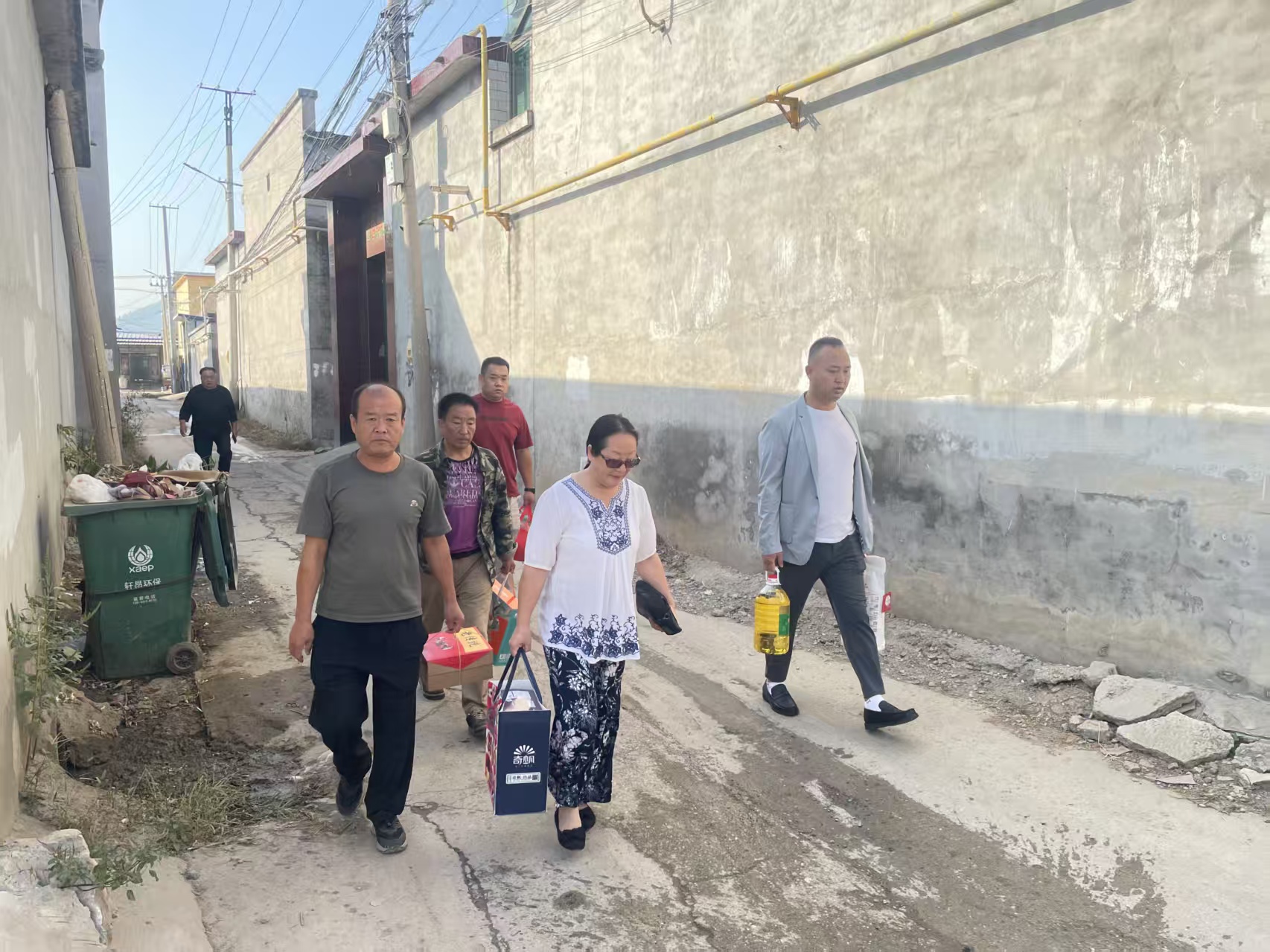 9月30日的清晨,带着几分初秋的微凉,保定市酒器文化协会党支部慰问队伍带着提前备好的米、面、油、月饼、野鸭蛋、牛奶、海参蛋白肽粉、西麦、彩柚、口罩等礼物,在满城区柳家佐村副书记李雪路引领下来到低保户困难老党员的家。