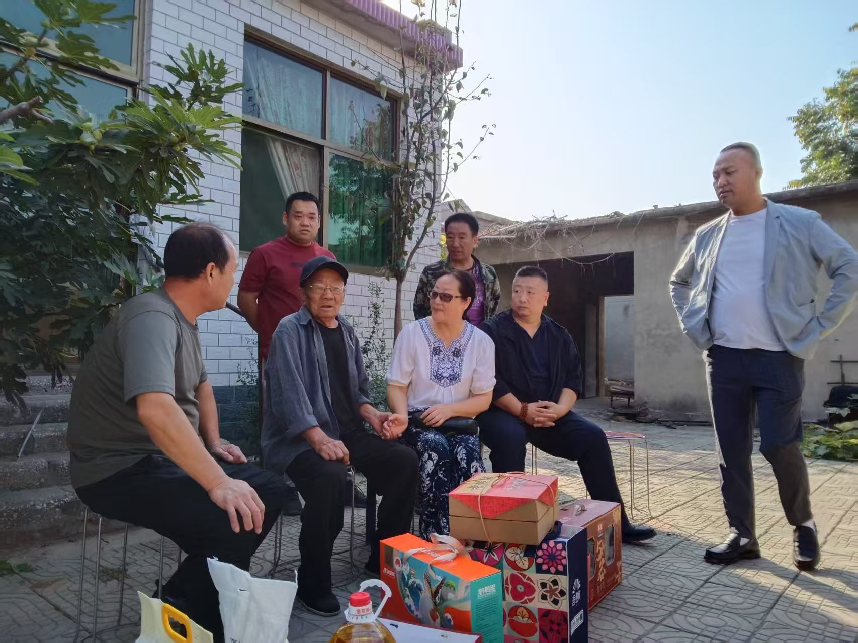 在院里,慰问人员围坐在老党员身边,拉着家常问冷暖,详细询问他近期的身体状况以及生活中是否有急需解决的难题。老党员李哲田说着,慰问人员静静倾听,不时点头回应,我们再三叮嘱他天气转凉要注意添衣,有任何困难随时联系村委。让老党员感受到被尊重与认可。