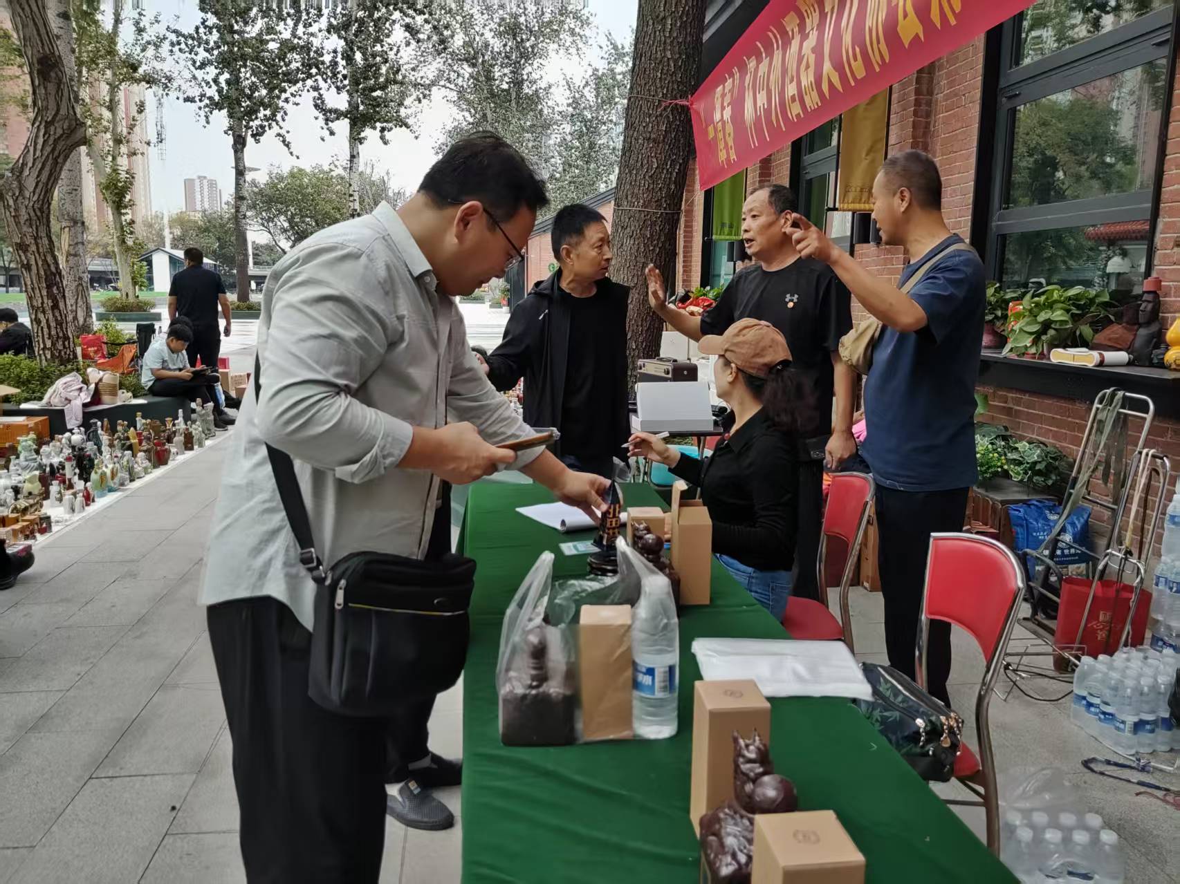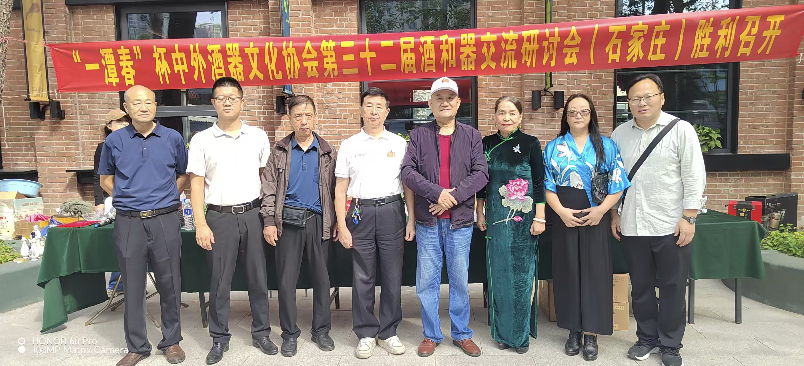 10月3日,秋阳正好,保定市酒器文化协会会长、党支部书记李斐,副会长刘立涛应邀参加了在河北石家庄长安区1953织音部落广场(原老棉一厂区)召开的一场酒器交流会。“‘一潭春’杯中外酒协全国第32届酒和器交流研讨会(石家庄)胜利召开”的横幅格外醒目,桌上整齐摆放着参会者的签到表,“冀之光”塔小酒版纪念瓶、龙印酒瓶、矿泉水。