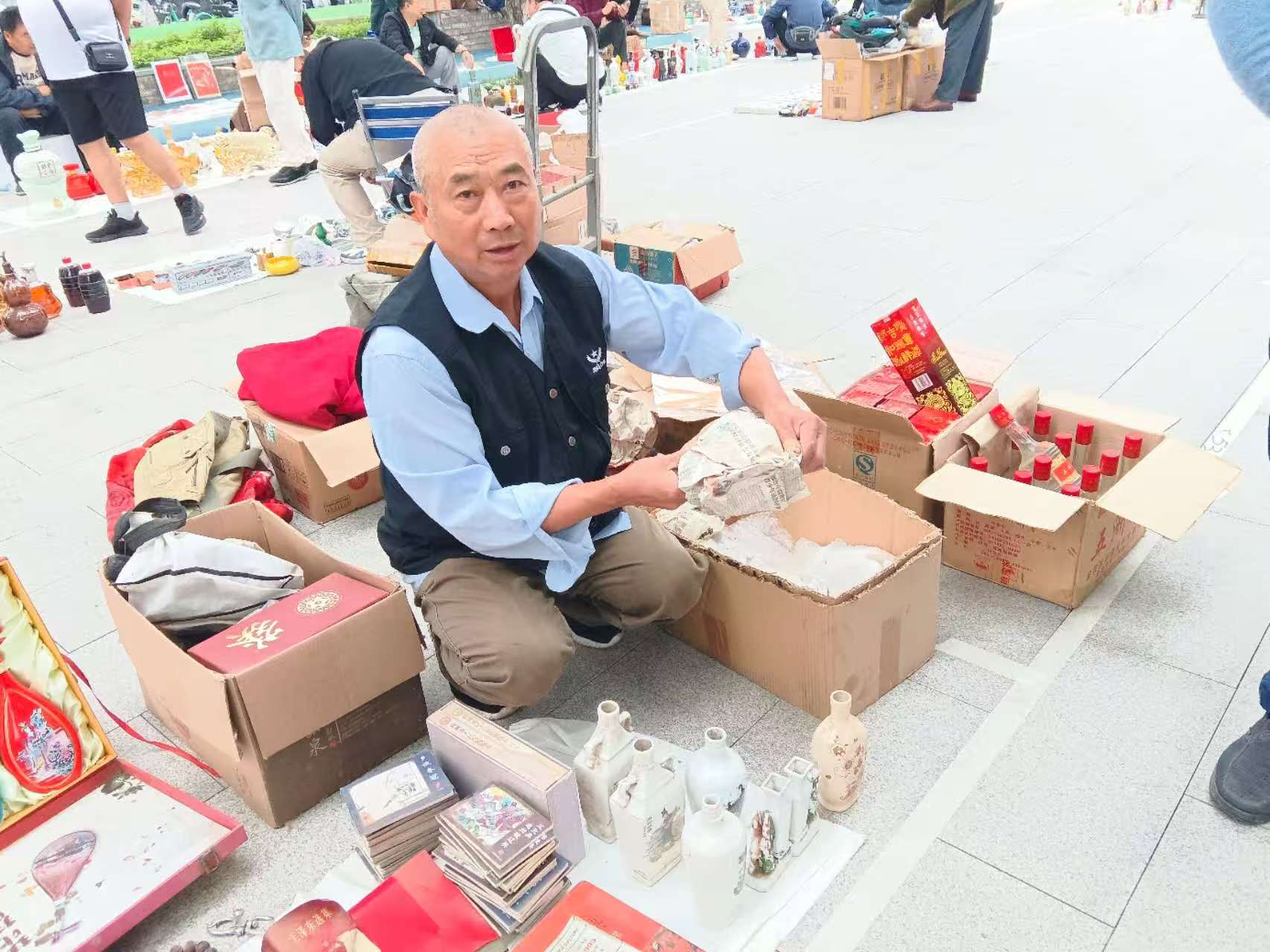 会场空气中有酒的醇香,场地摆放的酒器有从古朴的酒壶、酒樽,到造型别致的玻璃酒瓶、金属浮雕纪念酒罐等,标注着年代、工艺与背后的故事。参会者们或俯身细观,指尖轻轻拂过瓷酒器的细腻釉面,或三五成群围观,手里捧着自己带来的“珍藏”交流心得,引得周围人频频点头。