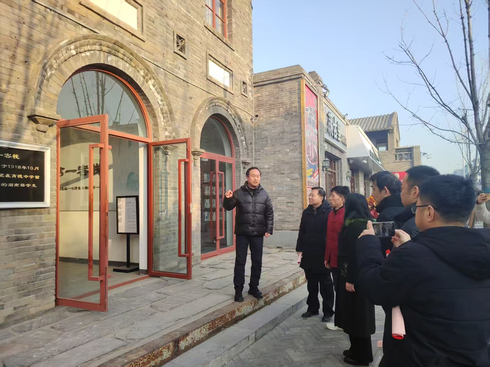 2026年2月3日上午,年味渐浓之际,保定市酒器文化协会会长、党支部书记李斐带领协会各层骨干一行,走进北唐胡同的保定第一客栈,开展主题参观学习活动,在红色文化浸润中迎接新春到来。