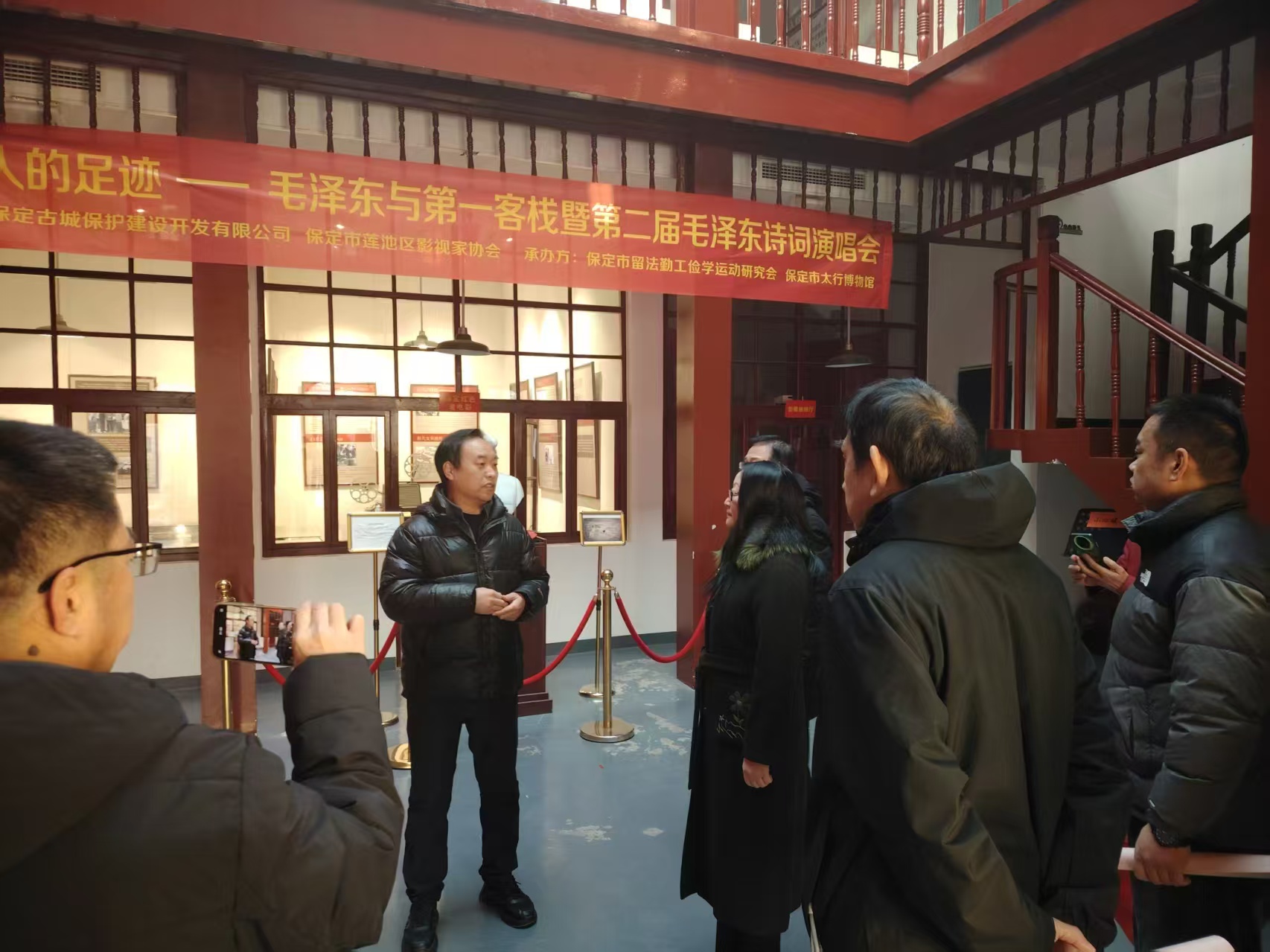 保定第一客栈作为承载城市记忆与红色底蕴的重要场所,留存着诸多珍贵历史印记。活动中,协会一行受到孟宪恒馆长的热情款待,在他的引导下,循着历史脉络细细聆听讲解,生动讲述了客栈背后的红色故事、民俗风情与城市发展变迁,每一处场景、每一件展品都让参观者驻足感悟,深切体会保定这座城市的厚重底蕴与精神传承。