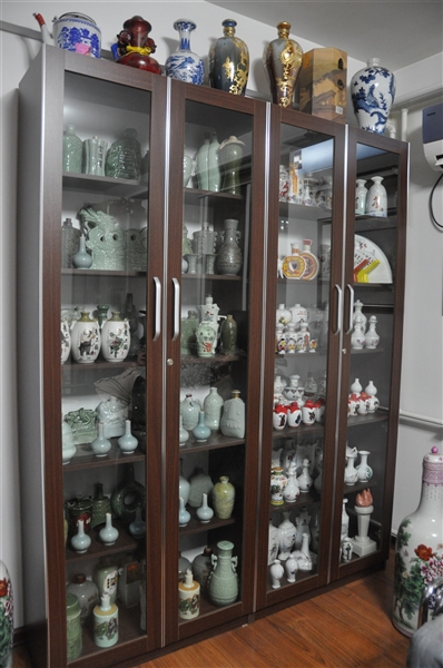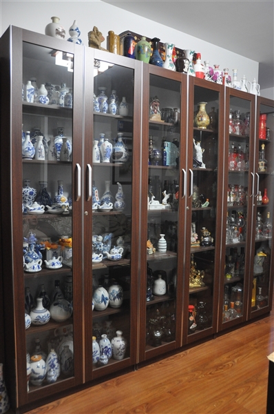 而自幼痴迷中国传统文化的李斐女士,在种种环境和条件成熟之际。坚定地走上了一条收藏酒器之路,即短暂又漫长,这是一条充满坎坷和狂喜的大道。李斐女士的内心是充实而又丰富的,那是一片片光的世界。光芒来自那玻璃制品的晶莹剔透,那瓷制品玉石般的白壁无瑕,那陶器制品土与火的完美艺术,那颇具文物价值的古朴纹理。是的,我们驻目在这近2000多个酒器中,是多么的幸运!她们形象各异,千姿百态。即有青花的素雅之美,又有历史人物的栩栩如生,即有民间的神奇传说,又有国粹的浓装淡彩,即有对英雄的伟大纪念,又有对一个年代的发展与期望。