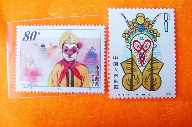 在王老的收藏中,关于十二生肖题材的邮票一直保护得很完好,其中关于猴的邮票最多。有1980年发行的第一轮八分面值的猴邮票,1992年发行的第二轮两枚一套面值70分的猴邮票,2014年发行面值1.2元一枚的花脸猴邮票,以及2016年刚刚发行的两枚一套每枚面值1.2元的猴邮票。除此之外,还有以孙悟空为题材的邮票,其中一枚面值80分的还是中国与巴西联合发行。