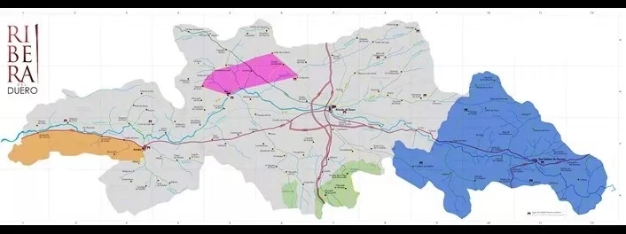 虽然产区里最著名,也可能是西班牙知名度最高的酒庄Vega Sicilia早自1864年已经创立,但杜罗河谷在1982年才正式成为DO产区,刚设立时名气甚至还不及早两年成立主要产白酒的Rueda。而Vega Sicilia也晚到此时,其所生产的Unico红酒才得以从Vino de Mesa变成DO等级的酒。但经过三十年,杜罗河谷已成为西班牙整个中部高原上最精英的产区。产区名为杜罗河谷,其实范围确实也是沿着杜罗河的两岸分布 从Soria省经Burgos省到瓦拉多利省共120公里宽,有17000公顷的葡萄园。
