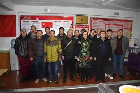 与会人员在六楼市酒器文化协会办公室参观党支部展板宣传内容及展柜中的酒与酒器,并在现场表演每人一句话的主题教育接力“不忘初心牢记使命”。