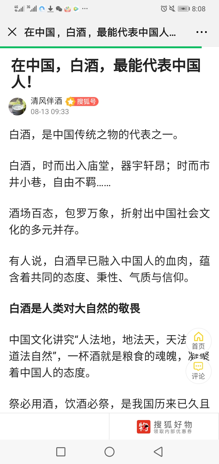 庆八一,酒与