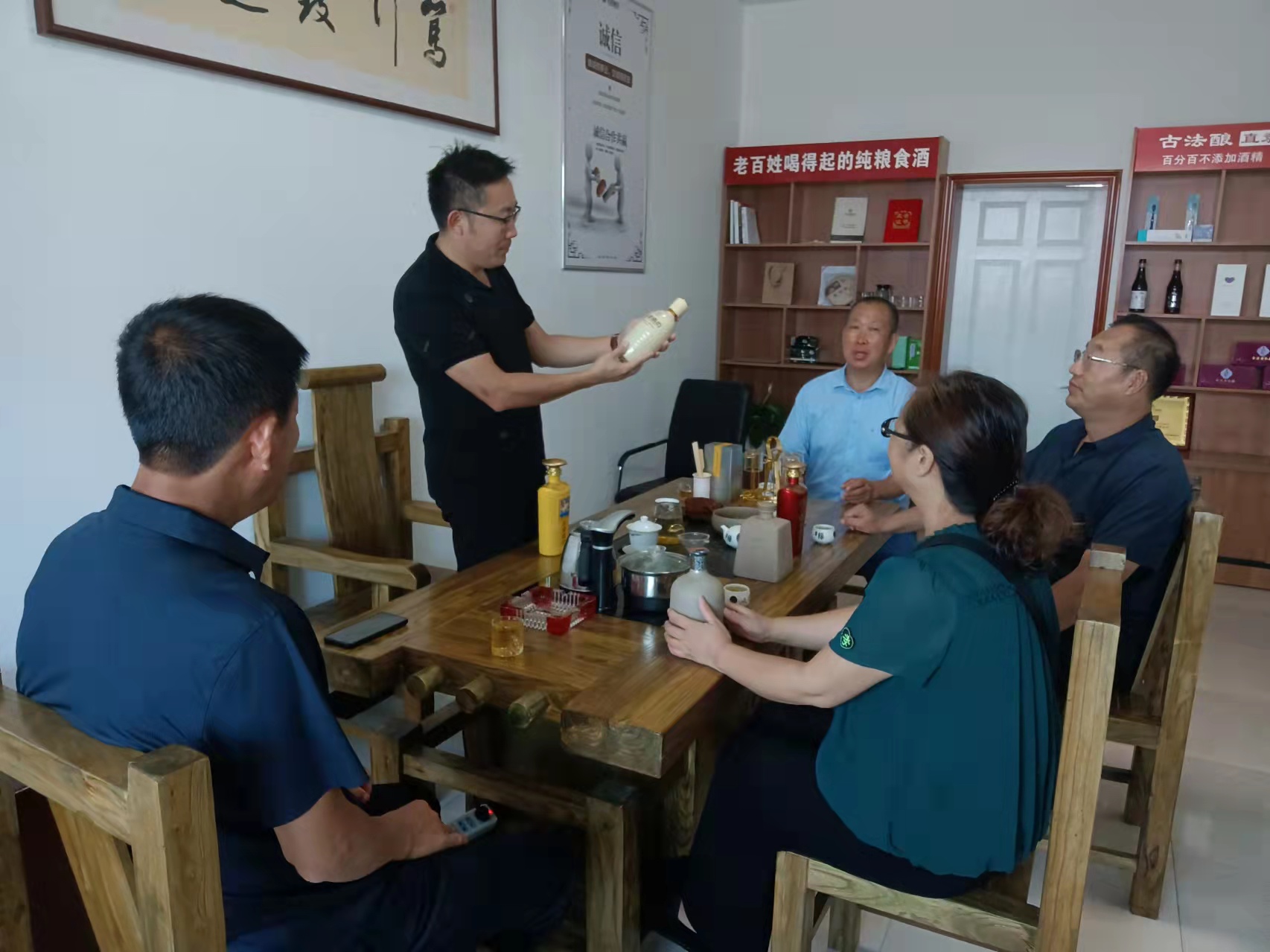 9月1日,保定市酒器文化协会会长及会员代表在直隶酒道馆和他们相互交流研讨。