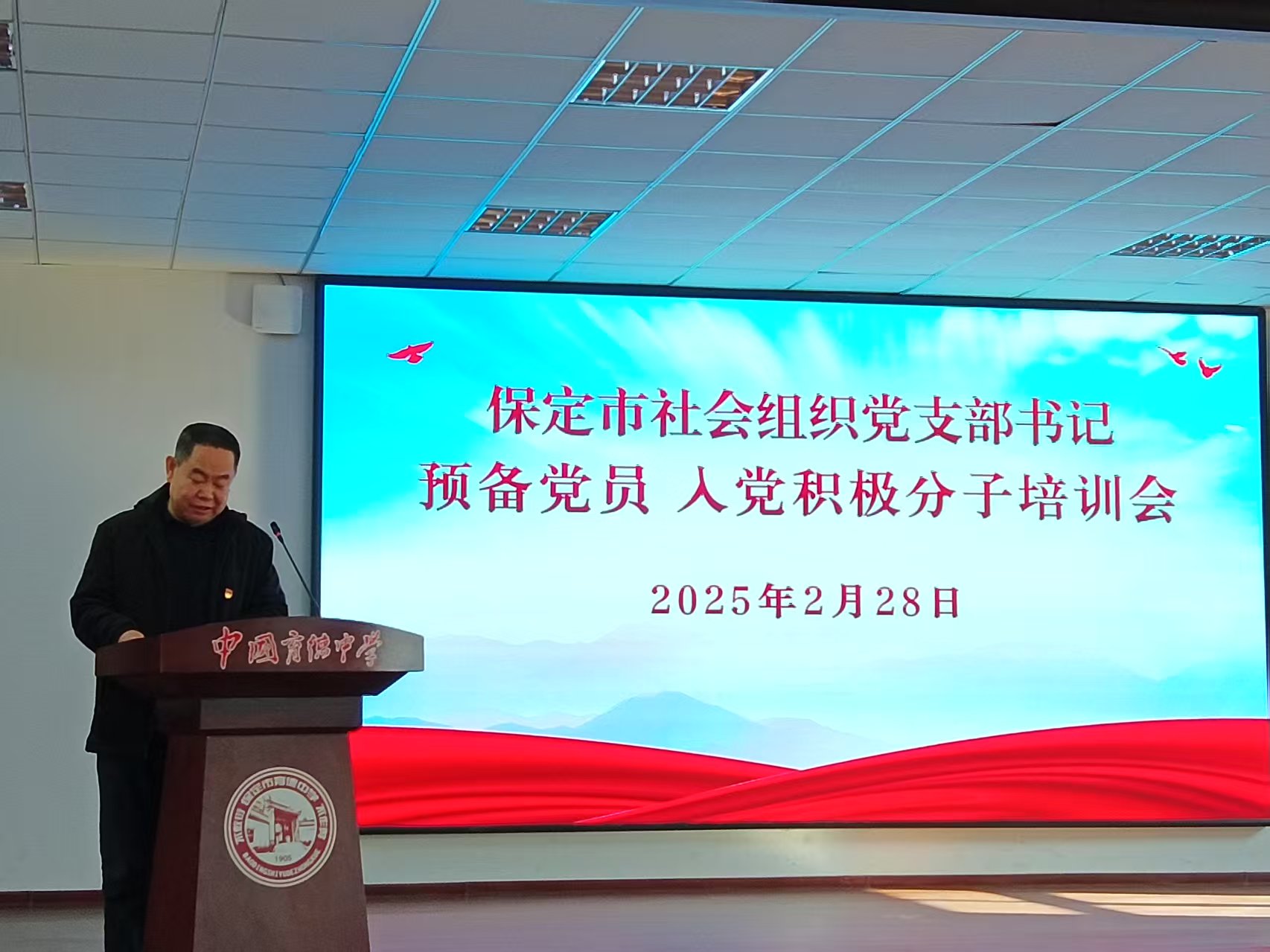 2月28日,保定市社会组织党委在保定市育德中学大礼堂召开社会组织党支部书记、预备党员、入党积极分子培训会,以不断提升社会组织党支部书记工作能力,同时对预备党员和入党积极分子进行集中培训。市社会组织党委全体委员,172名党支部书记及90名预备党员和入党积极分子参加会议。会议总结市社会组织党委2024年工作,并对2025年各支部工作的开展提出明确要求。同时部署近期党委重点工作,分析如何推进社会组织规范化建设、助力经济社会高质量发展,讲解发展党员工作的流程及标准。