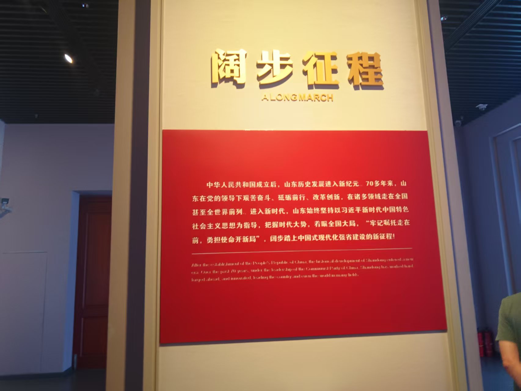 中华人民共和国成立后,山东历史发展进入新纪元。70多年来,山东在党的领导下艰苦奋斗、砥砺前行、改革创新,在诸多领域走在全国甚至全世界前列,进入新时代,山东始终坚持以习近平新时代中国特色社会主义思想为指导,把握时代大势,着眼全国大局,“牢记嘱托走在前,勇担使命开新局”,阔步踏上中国式现代化强省建设新征程!