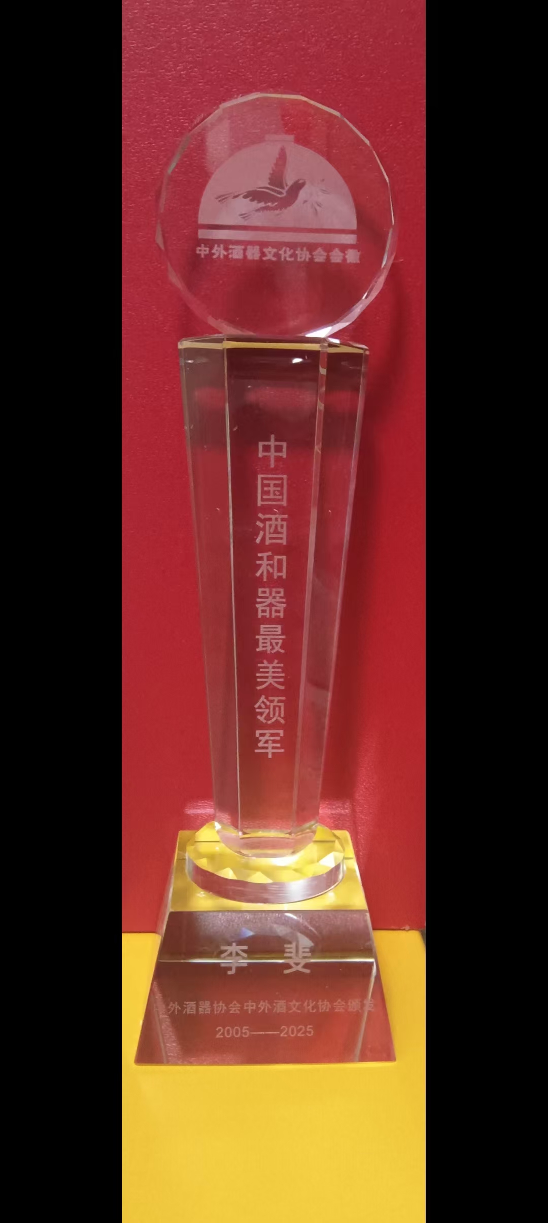 欣获两协会颁发的“中国酒和器最美领军”荣誉奖杯,倍感荣幸与感激!这份殊荣不仅是对我个人工作的认可,更是对酒和器文化传承与创新事业的有力鼓舞。衷心感谢您的信任与支持,未来我将继续深耕领域,为弘扬中国酒和器文化、推动行业发展贡献更多力量!