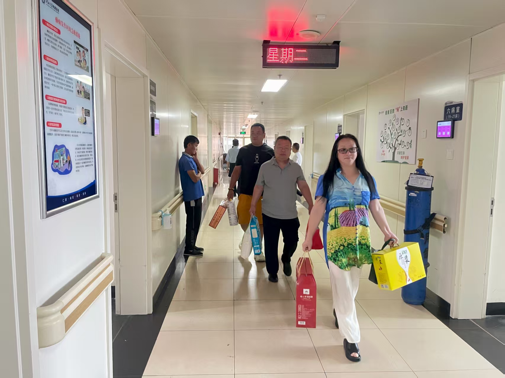 保定市酒器文化协会会长、党支部书记李斐,于7月28日上午和环卫清洁工苑改玲大姐取得联系,预约8月初到家中看望她,当知道她的老公得病住院了,第二天上午同协会党员干部们携带礼品到省医院去慰问,为她们带来了米、面、油、鸡蛋、牛奶、海参蛋白肽粉、高钙豆奶粉、虾仔酱、苹果、口罩等礼物。