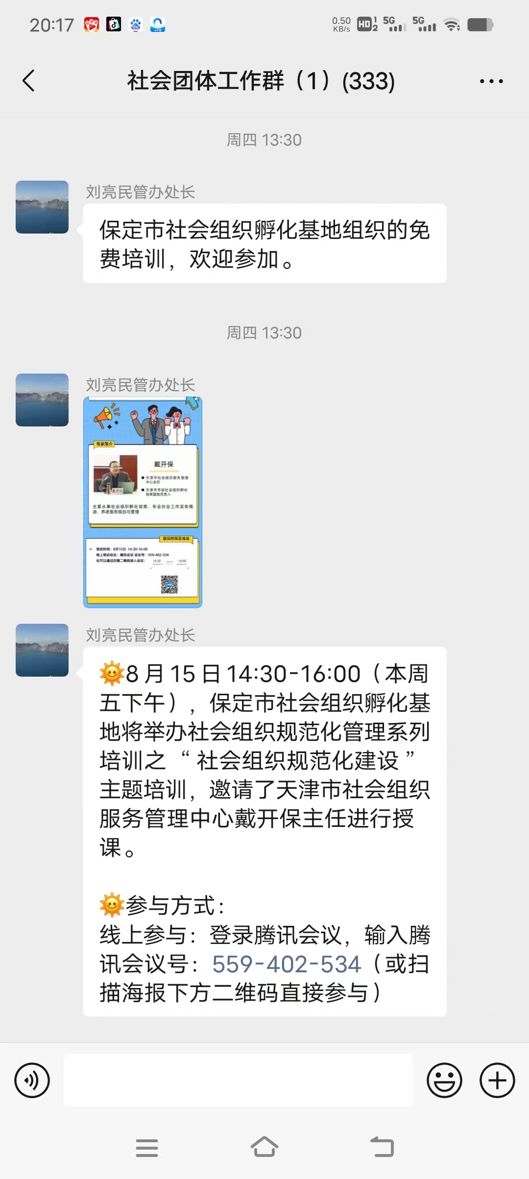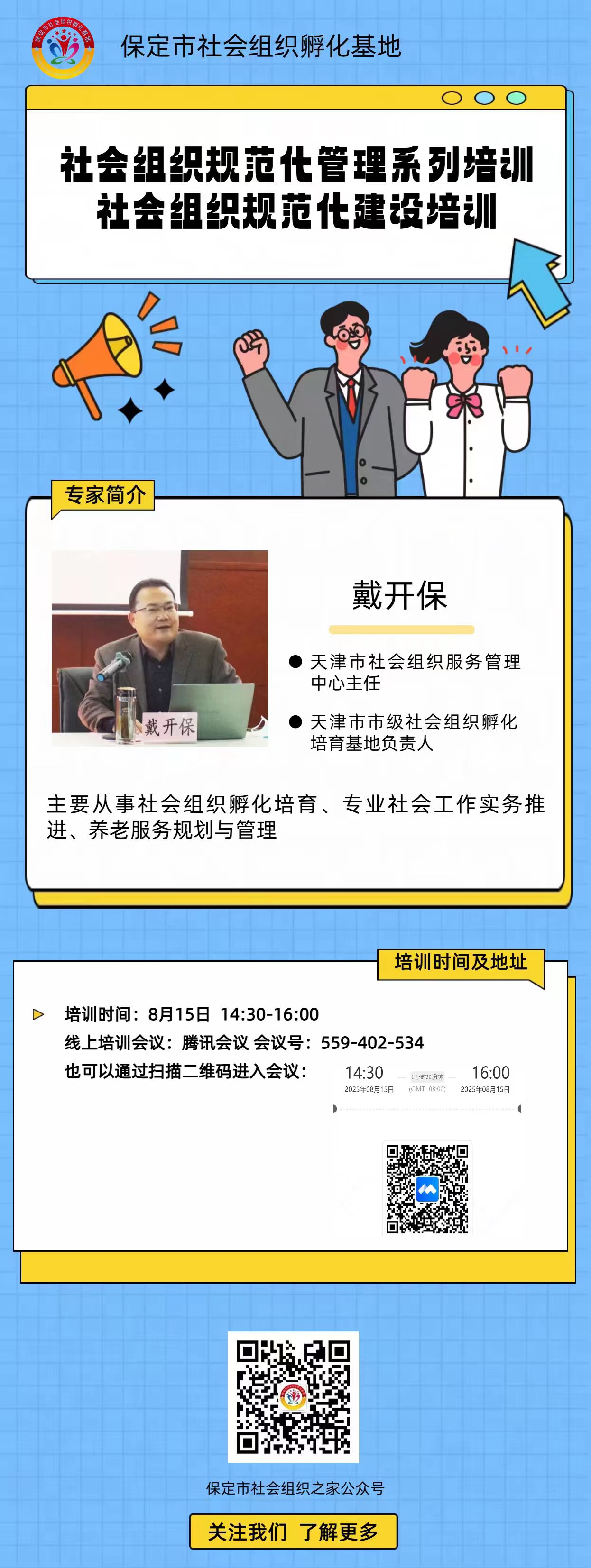 8月15日14:30-16:00(本周五下午),保定市酒器文化协会参加保定市社会组织孵化基地举办的社会组织规范化管理系列培训之“社会组织规范化建设”主题培训,此次邀请了天津市社会组织服务管理中心戴开保主任进行授课。