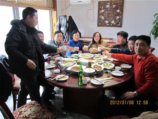 新年伊始,万象更新。2012年元月8号,保定市酒器文化协会,有李斐会长和几位副会长、顾问等的十几位成员,欢聚在保定力高古玩市场,等待远道而来的两位山东酒友,其中“周村老张”是一位在酒版、老酒收藏方面具有较高水准的酒友,是在网络上神交已久的老朋友。上午10时,两位朋友如期而至。大家纷纷互相问候。并在古玩市场的标志性建筑——小亭子下合影留念。