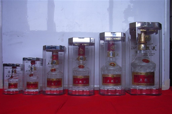 今天展示的是一组水晶“五粮液”酒,它的外包装盒方瓶抹角,晶莹剔透,酷似水晶玻璃,非常精美,俗称水晶“五粮液”,全套共六瓶。从50ml、100ml、250ml、375ml、500ml、1000ml、52度,浓香型白酒,05年至07年生产的,组成这样一套“五粮液”用了很长的时间,跑了多个城市并通过很多渠道才组成完整一套,很是难得,爱不释手。“五粮液”酒是中国的高端白酒,荣获了第二届至第五届中国名酒称号。这种成套的组合圈内叫它拖拉机,也有叫步步高的,意思是从小到大,摆在一起非常美观,既有经济价值,又有观赏价值,值得收藏。
